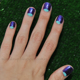 Me gusta mucho la combinación azul-morado, por eso elegí estos colores, aunque podéis hacerlo con los esmaltes que más os guste.